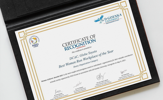 The PNGI Forum holds an annual awards ceremony in collaboration with G D Goenka University, recognizing various enterprises for their contribution towards the social welfare of both the employees and the society as a whole. It was a rather proud moment that DCAC, Globe Toyota, owing to the triumphant female personnel, won the award for “Best Women Run Workplace of the Year”. The mood was positively electric as the division rejoiced in their efforts, vowing to contribute even more in the coming future.